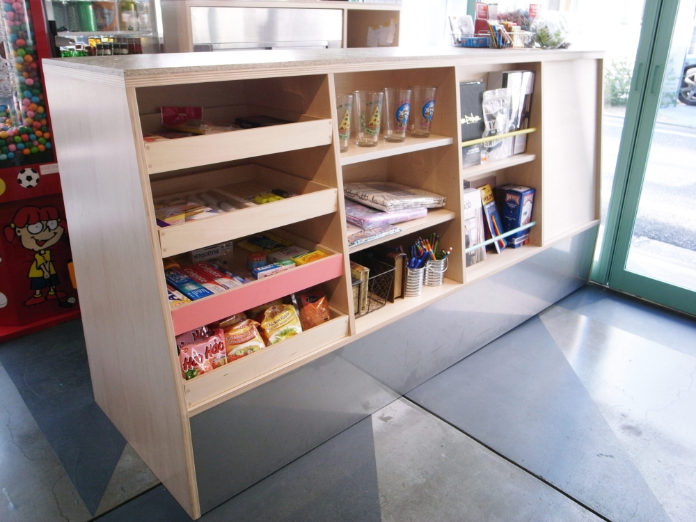 The shop displays fun visual items in addition to a gallery. Space is available for the events and also communication with customers.