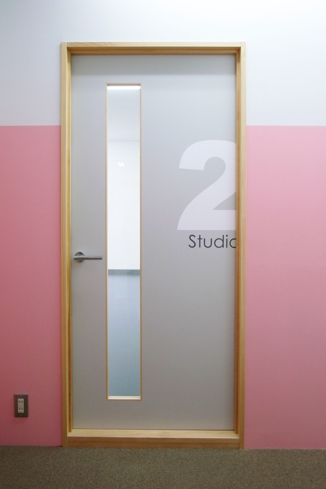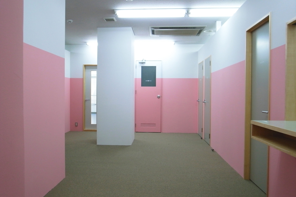 渋谷にあるバレエのダンススタジオ。 テーマカラーであるピンクを差し色に淡い色味とナチュラル色の木を合せながら、シンプルでも居心地の良いスタジオになるよう心掛けてデザインしました。ダンススタジオにとって重要視される床に関しては特にこだわり、下地から中材、表面材に至るまでその組み合わせを検討し、脚の感覚が発達しているダンサーに確かめて貰いながら素材を決めていきました。