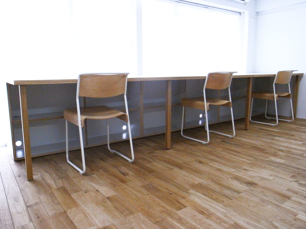グラフィックデザインを行う、リムラムデザインのオフィス。 古いマンションが持つ素朴で懐かしい雰囲気と、オフィス機能の両立を心掛けながらデザインをしました。 積層合板の小口を繰り返すことで、シンプルな構成の中にメリハリを持たせました。